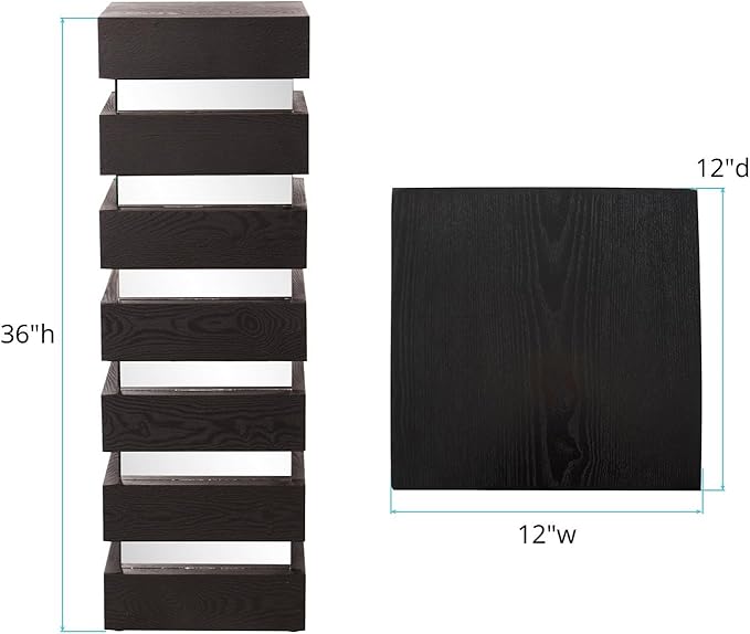 Howard Elliott Stepped Pedestal Accent Table, Black Wood and Mirrored Side End Table for Home Decor, Small Space Pedestal Table for Bedroom, Living Room & Entryway, 12 x 12 x 35.5 Inch, Tall