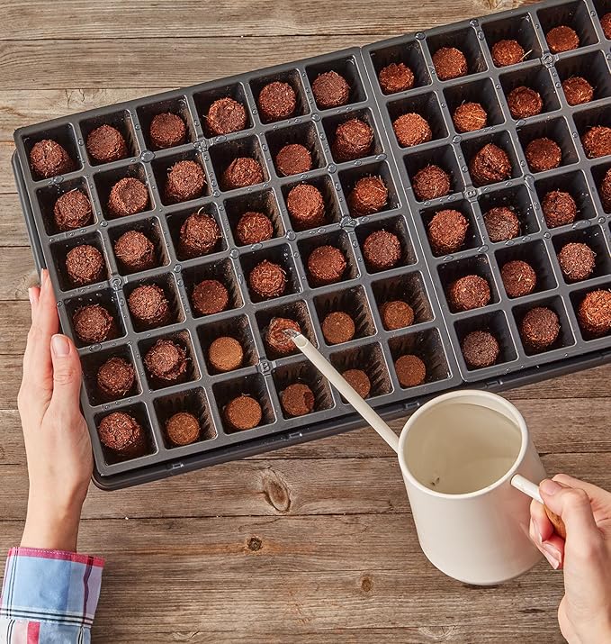 - BIGGER, BETTER SEEDLINGS: Take the guesswork out of when and how often to water with this all-in-one self watering kit. It minimizes overwatering and promotes healthier root development, giving you hardier plants. Pellets of coco coir hold the perfect amount of moisture for seedlings.