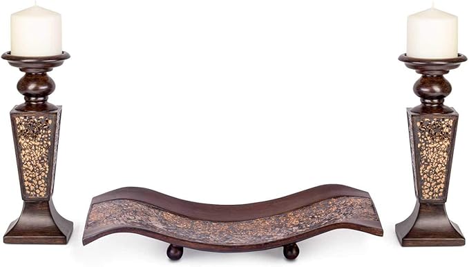 - - TOUCH OF BEAUTY: Elegantly contoured with an exquisite crackled mosaic design, this set of two candle holders makes for perfect brown table decorations and blends beautifully with any home decor. ★Candles and other decor accents shown are not included★