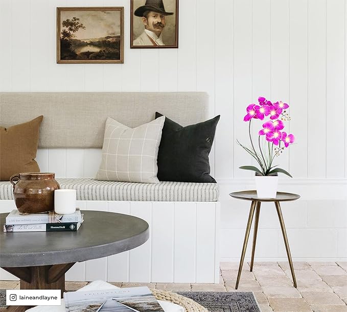 - Add Romantic Atmosphere- Freshen up your room with our stunning pre lit orchid lamp, which adds a joy wherever they're placed. With its lush, vivid petals and warm led lights, this phalaenopsis faux orchid arrangement makes the environment a warm and romantic look. Display it as a centerpiece on the dining table, on a nightstand or the mantel. It adds warm color and glow anywhere with no watering, fading or shedding like real orchid plant.
