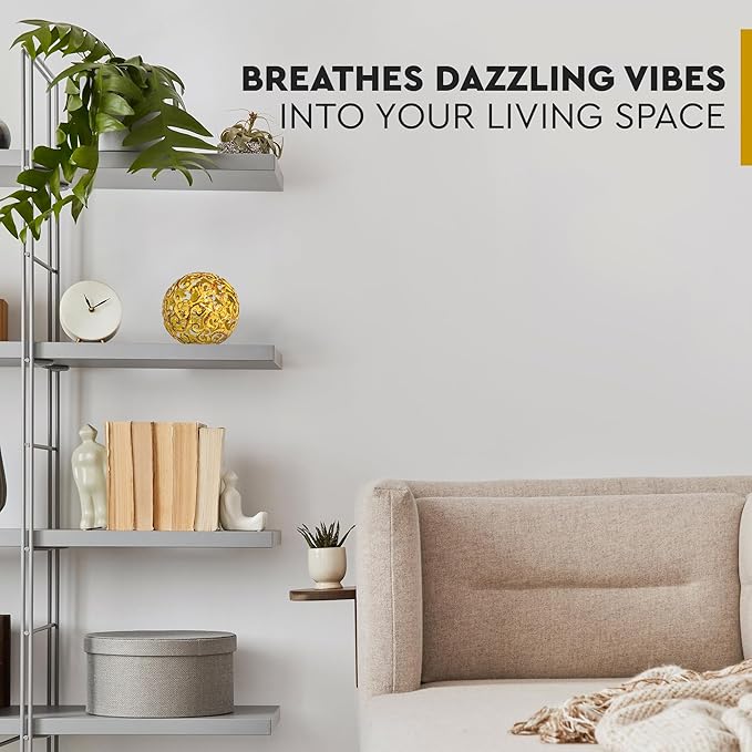 Everydecor Metal Decorative Sphere for Home Decor - Decorative Balls for Shelves, Centerpiece Bowls, Bookshelf - Decoration Orbs Accents for Living Room, Bedroom - Fancy Yellow Shelf Spheres
