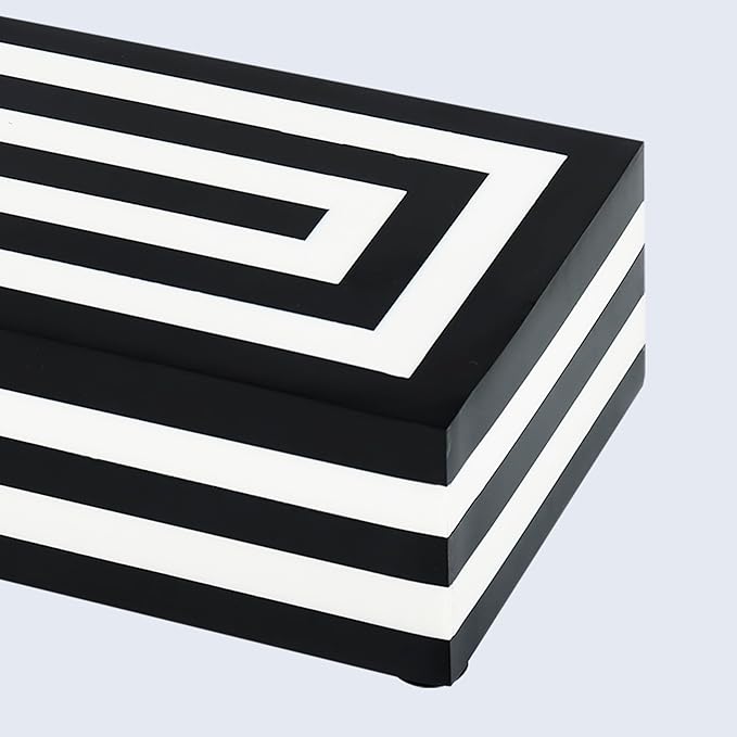 Handicrafts Home Decorative Storage Box with Lid– 10x4.5x2.5” Modern Home Decor Organizer, Memory Box & Jewelry Storage- Decorative Boxes for Living Room & Shelf Decor- Concentric - Black White