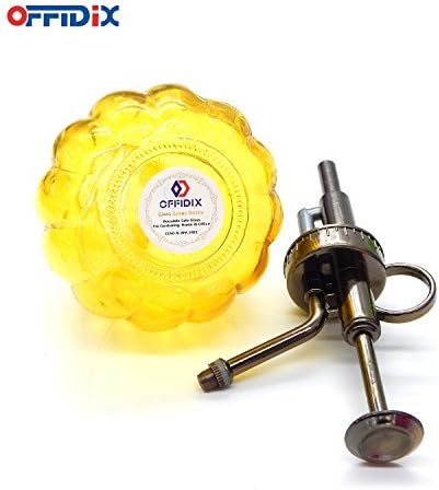 OFFIDIX Yellow Glass Watering Can Indoor, 6.3" Tall Vintage Style with Bronze Plastic Top Pump One Hand Spray Bottle