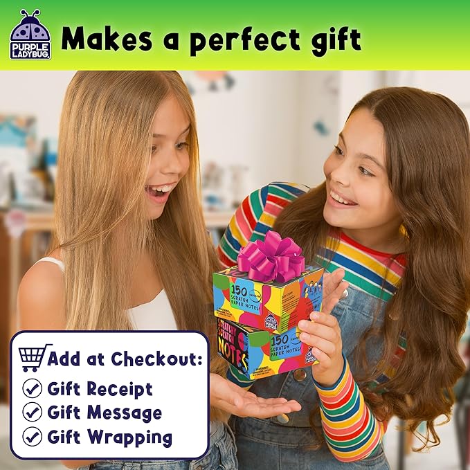 PURPLE LADYBUG 150 Rainbow Scratch Art Mini Notes - Arts and Crafts Supplies, Fun & Colorful Scratch Paper for Kids & Teens Gift, Classroom School Supplies, Back to School Gift, Travel, Camping