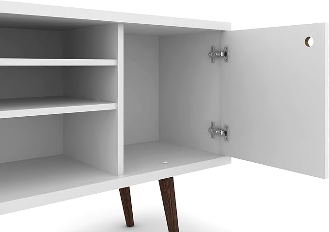 Manhattan Comfort Liberty Mid Century Modern TV Stand for Televisions up to 50 Inches, Bedroom and Living Room Entertainment Center with Storage, Shelves, and Cabinet, 53" Wide, White
