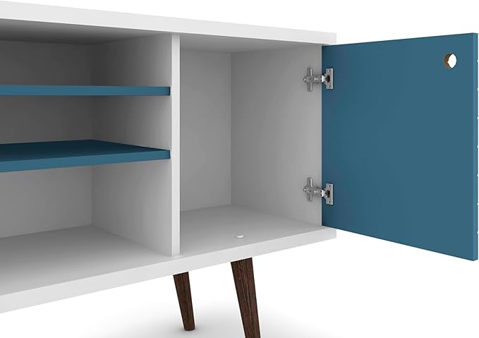 Manhattan Comfort Liberty Mid Century Modern TV Stand for Televisions up to 50 Inches, Bedroom and Living Room Entertainment Center with Storage, Shelves, and Cabinet, 53" Wide, White/Aqua