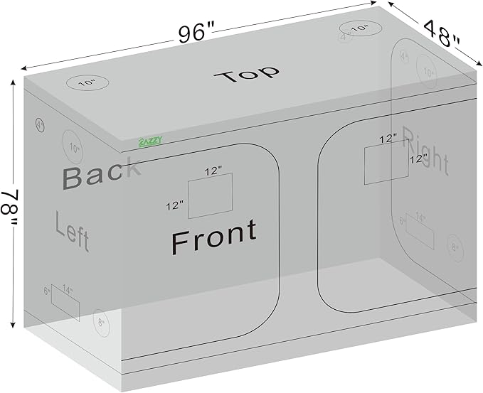 - 【Top-Quality Materials and Sturdy Frame】Zazzy plant grow tent made of superior quality reflective 600D mylar and double stitched to ensures the light blocking. Heavy duty all steel poles which are rated to handle at least 110 lbs. The frame is specially finished to ensure smooth installation and safe handling.