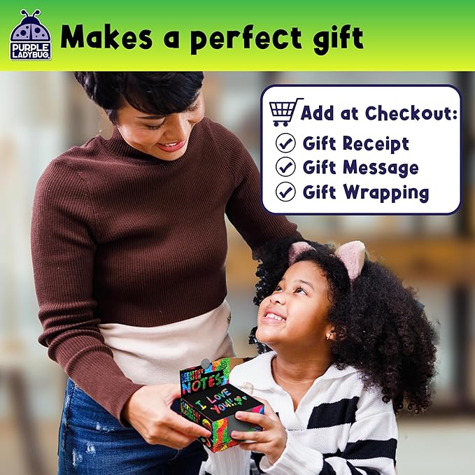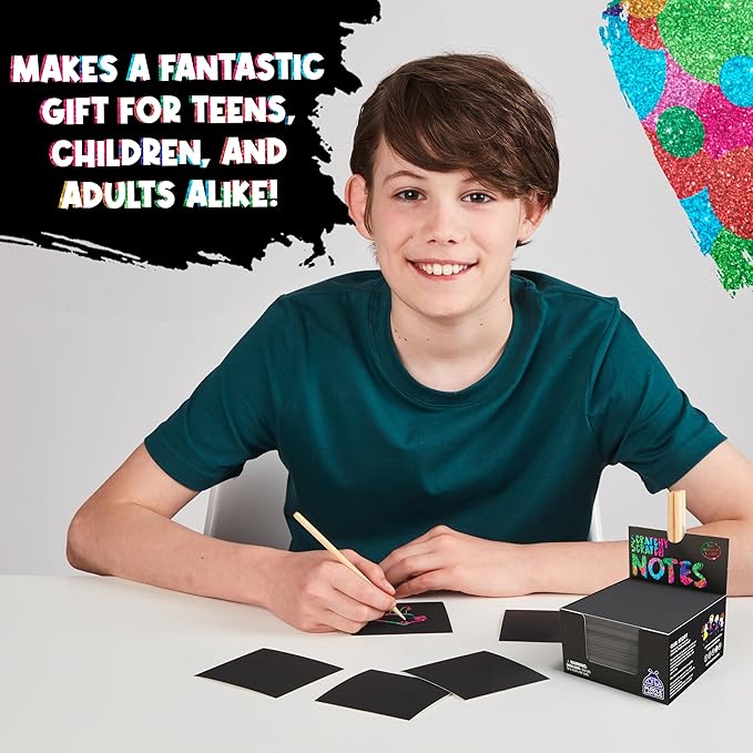 - Captivating and Colorful Entertainment: Keep kids creatively engaged for hours with this vibrant scratch art notepad set, featuring 150 sheets that reveal dazzling rainbow holographic colors underneath a sleek black coating. Whether it's drawing whimsical scenes, doodling, or jotting down secret messages, the visual surprise beneath each scratch adds a fun, interactive twist. A favorite among parents for its ability to hold attention during quiet time, car rides, or playdates, this mini notepad offers an exciting way for kids to express themselves without mess or screens.