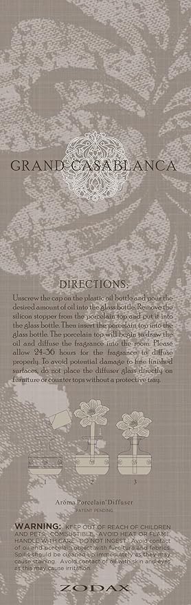Zodax Grand Casablanca Reed Diffuser - Home Fragrance Oil Diffuser Ideal for Living Room, Bathroom, Office - Porcelain Flower Design - Gift Box Packaging Included - Versailles Tuberose - 1.69 Oz.
