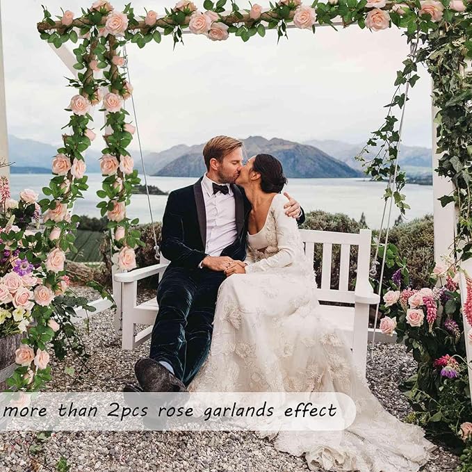 - Note: These rose vines may have an unpleasant smell when you unwrap them. We suggest you put them in a ventilated place for a few days before using them.The color of the flower vines from different batches, lighting and displays may be different from what is shown in the pictures. And please note that some of the scenes shown in the picture need more than 2pcs rose garlands, like wedding swing, table runner decoration.