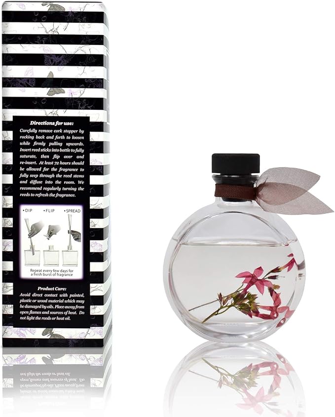 - USAGE & CARE – For lasting performance, insert all reeds fully and let them soak for 24 hours. Flip them once a week to maintain scent strength. Keep diffuser on a level surface away from direct airflow, windows, and appliances.