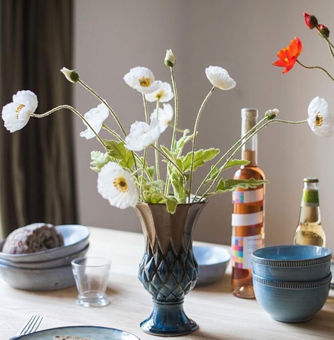 Artificial Poppy Flowers, 5 Bundles Faux Poppies with Stems for Floral Arrangements - Wedding, Home, Office, Party Table Centerpiece Decor (White)