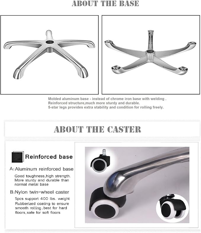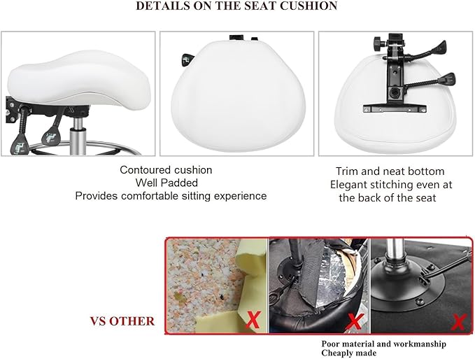 - Safety security:The heavy duty stool is well constructed,very sturdy and durable.made by top quality materials - heavy duty aluminum base in solid structure measuring 25.2 inches provides extra stability,nylon twin-wheel casters and gas lift cylinder meet ANSI/BIFMA X5.1 & EN 1335 General-Purpose Office Chairs quality standard with SGS testing and certification. Iron plate under seat cushion as double protetion,guarantees safety use,avoid seat exploded and hurt body.