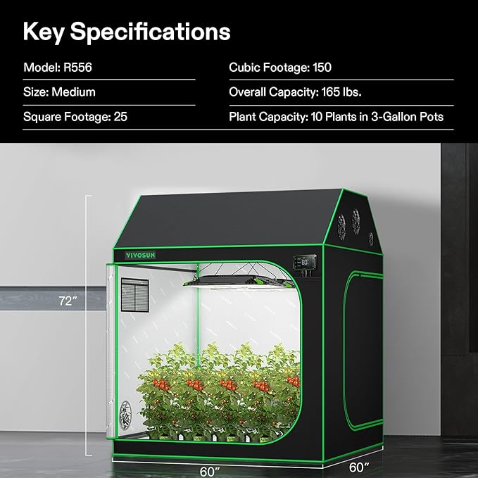 VIVOSUN R556 5x5 Grow Tent, 60"x60"x72" Roof Cube Tent with Observation Window and Floor Tray for Hydroponics Indoor Plant for VSF6450