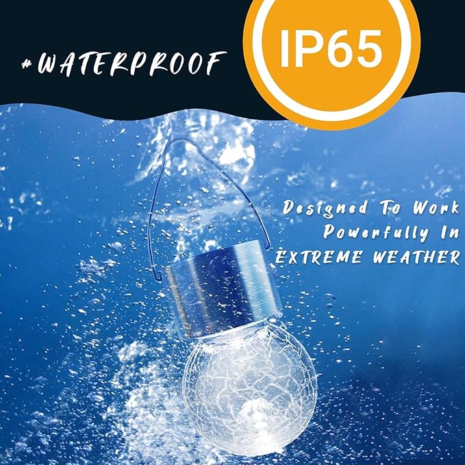 GIGALUMI 8 Pack Solar Hanging Lights, Multi-Color Changing Cracked Glass Hanging Ball Outdoor Lights with Waterproof Solar Lanterns for Garden, Yard, Patio, Lawn