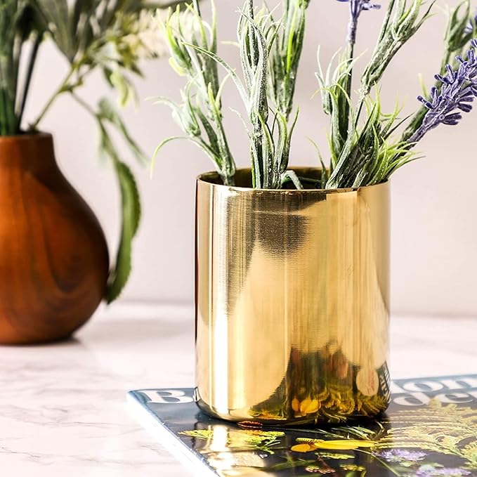 - Versatile Storage Companion: Seamlessly transition this gold utensil holder into a chic gold makeup brush holder or a stylish gold toothbrush holder. Its elegant design complements both home and office decor