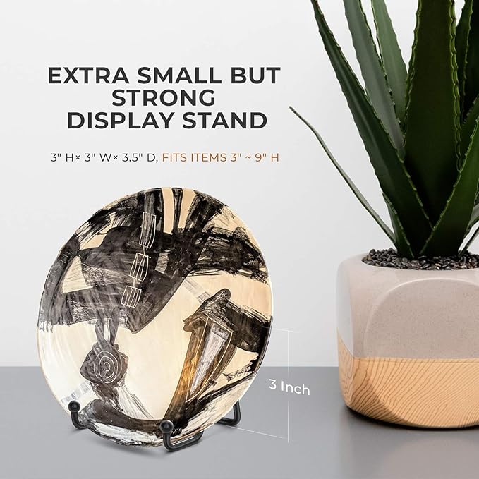 - SMALL BUT STURDY DESIGN: - This plate display stands has a matte black powder-coated finish and wrought iron construction, strong enough to hold decorative plates, painted tiles, commemorative plaques, photo frames, postcards, pictures, book, canvas, etc.