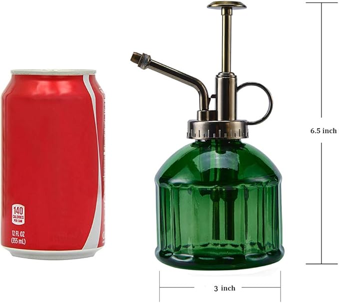 Glass Plant Mister Spray Bottle, Vintage Plant Spritzer Sprayer Mister, Succulent Watering Bottle with Top Pump, Small Glass Watering Can for Indoor Outdoor Houseplant - Dark Green