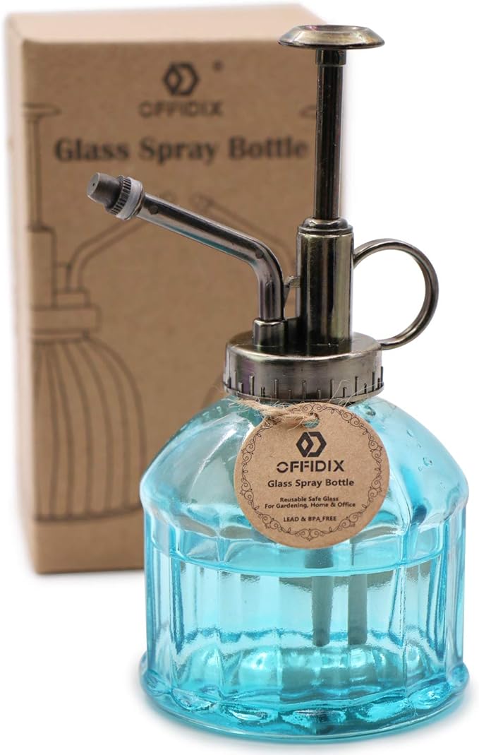 OFFIDIX Glass Spray Bottle,Flower Mister Watering Can Pot 6.3" Tall Spritzer Bronze Plastic Top Pump One Hand Watering Can Indoor Plant Mister Spray Bottle for Garden, Plants, Cleaning