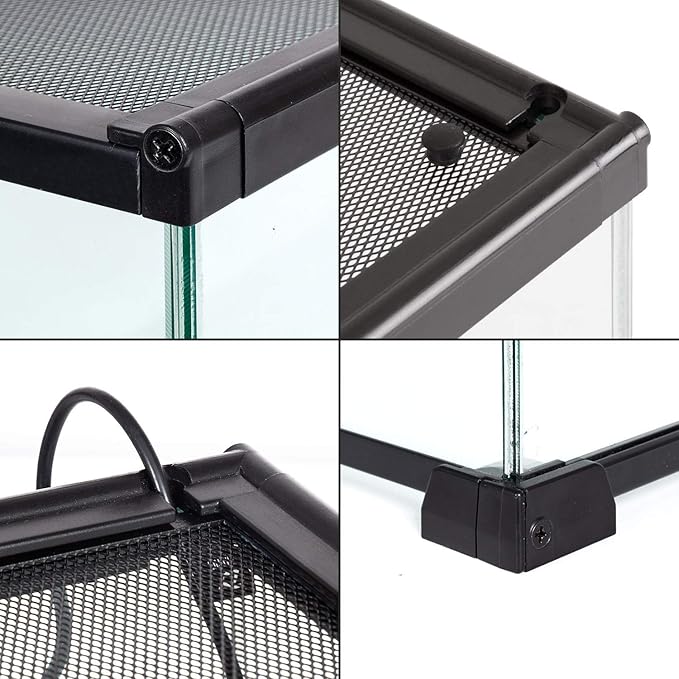 - 【360° Full View Glass Tank】This 4 sides of the 8 gallon reptile tank is made of full tempered glass, allows you to watch and interact with your pets easily.