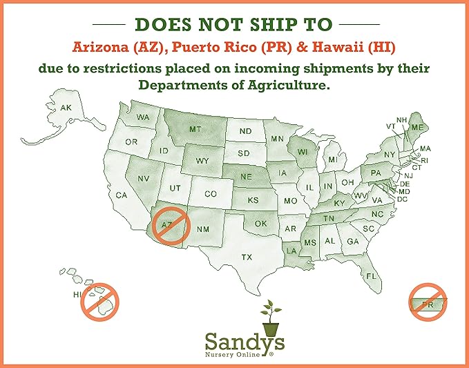 - ***Ships: (6) Quart pot with soil, full & well rooted 16" tall. Does Not Ship to AZ & CA.
