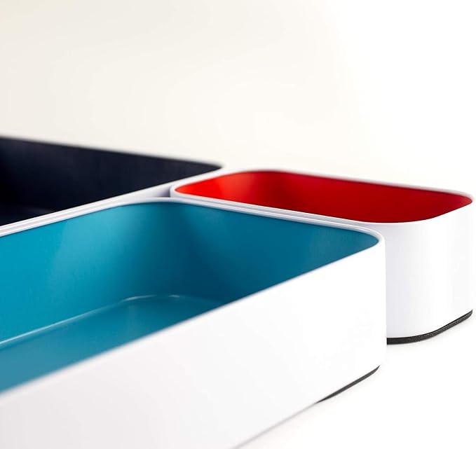 - BOLD DESIGN: Our trays have colorful interiors and bold patterns allowing you to color code your items while adding a stylish pop of color to your drawers, pantry, vanity, and office desk tops
