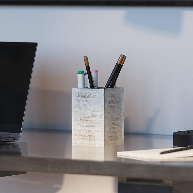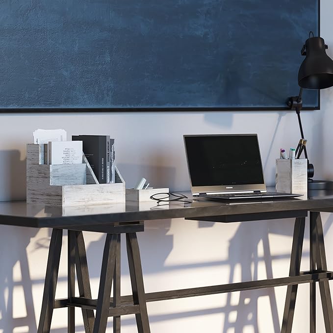 - Tired of the same old mesh organizers? STAND OUT and EXPRESS YOURSELF with this awesome set! The whitewashed rustic wood will surely grab attention at the office or at home. This set is a perfect match for rustic, industrial, or country style decor.