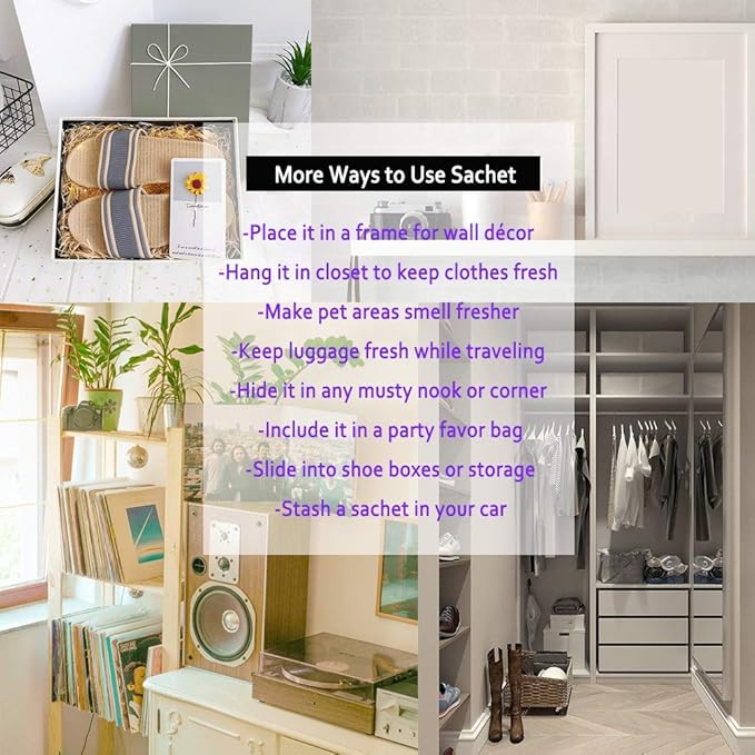 - Great Value Set & Ideal Gift: This 12-pack offers amazing value for continuously freshening the air throughout your entire home. This Drawers and Closets Sachets Comes in a beautiful retail package, makes it an ideal gift for housewarmings, holidays, a thoughtful wedding favor. Ready to be gifted for Birthday, Christmas, Mother's Day, Thanks Giving, It's the perfect gift for friend or family who loves a fresh and organized home, and a fresh and beautifully scented living space