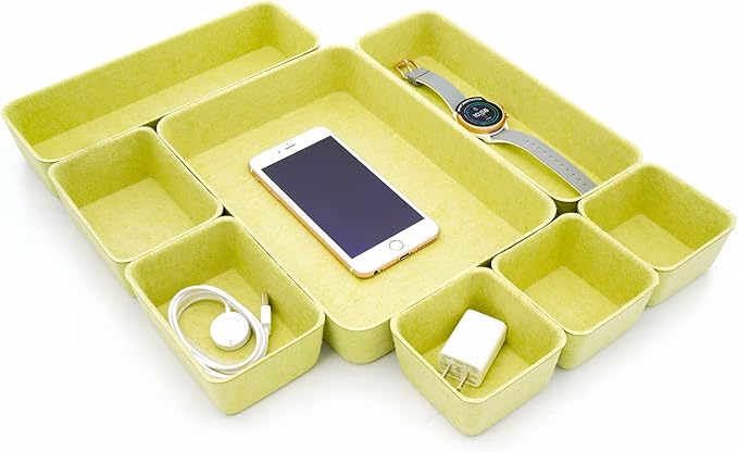 Welaxy Drawer organizers trays Felt storage bin home office Desk Minimalist Lifestyle Natural Shallow Box 8-Piece holiday gift solution (Linden green)