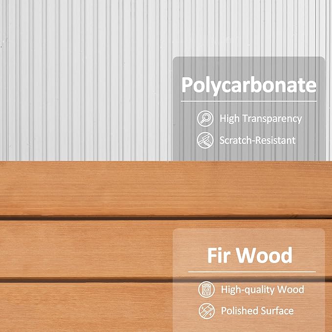 - Fir Wood: The wooden greenhouse is crafted from pure fir wood, with a polished exterior that showcases a rustic style
