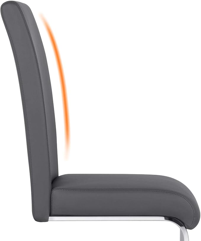 Yaheetech Dining Chairs Set of 2 Modern Faux Leather Upholstered Dining Room Chairs with High Back and Metal Chrome Legs for Kitchen/Living Room/Restaurant, Dark Gray