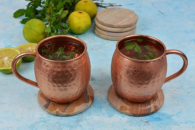 Sandstone Water Absorbent Hand Crafted Round Coasters for Drinks - 4 Inches Wide Thirsty Stone Bar/Drink Coasters- Made from Rainbow Sandstone (Set of 4 with Holder)