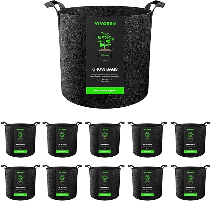VIVOSUN 10-Pack 3 Gallon Grow Bags, Reinforced Planter Fabric Pots for Gardening Black