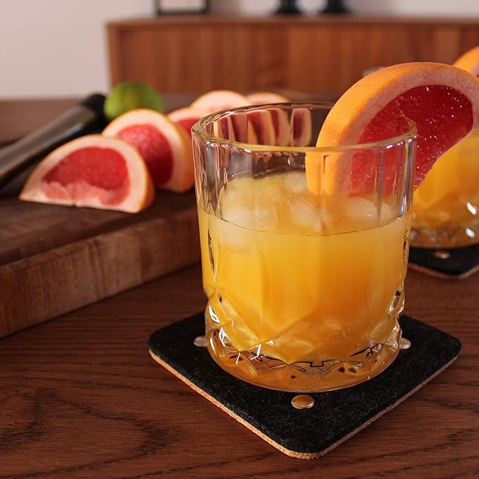 Barvivo Classic Felt Coasters for Drinks with Rivets - Set of 8 Cork Coasters with Felt Side for Tabletop Protection, Anti Slip, Absorbent, Suitable for Drinks & All Table Types - Black Design