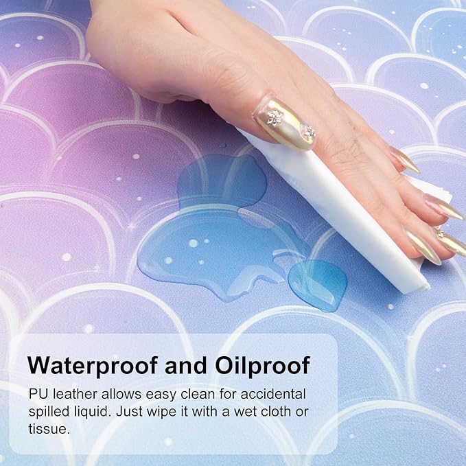 - Waterproof & Easy to Clean - Made of water-resistant and durable PU leather, this mousepad help prevent your desk from damages such as scratches, stains, spills and heat. Easy to clean, just wipe with a wet cloth or tissue.