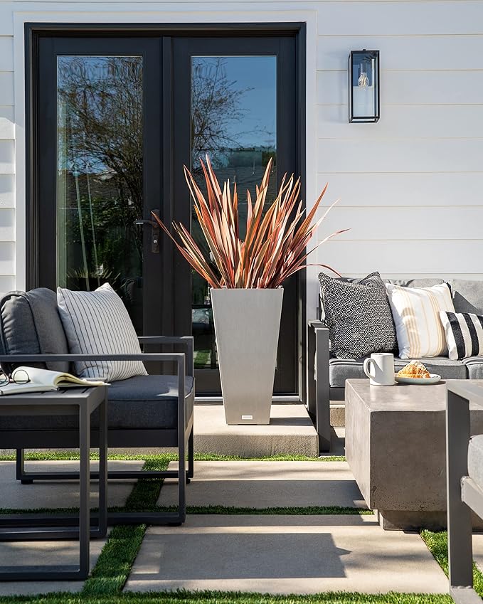 - GARDEN DECOR: Decorate your space with the Veradek Taper planter; Whether you use it as a patio, entrance or railing accent, this strong and sturdy yet lightweight contemporary garden container is the perfect fit with its sharp and modern appeal