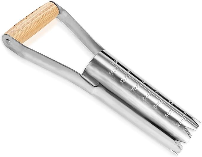 Berry&Bird Garden Bulb Planter with 6 inches Depth Mark, Garden Bulb Transplanter Tool with Wooden Handle, Stainless Steel Soil Release Tool for Transplanting Digging Planting Flowers