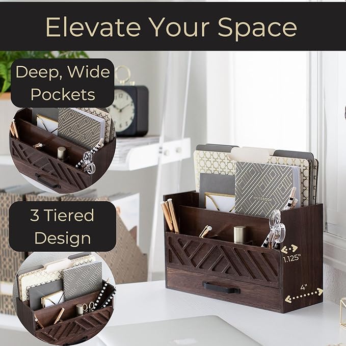 - MAIL ORGANIZER WITH DRAWER: Streamline your workspace with a 6-compartment mail sorter and spacious accessory drawer — perfect for organizing bills, papers, supplies, and more.