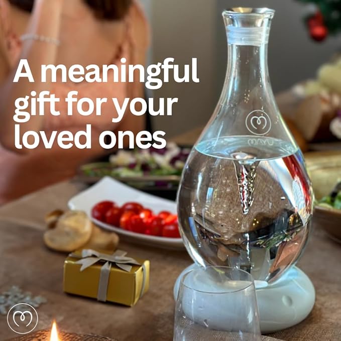 - The Most Unique Gift: Mayu Swirl Dispenser comes in a beautiful box that includes: 51oz .5 liter 0.40 gallon Glass Carafe, rechargeable vortex generator base, USB Type C charger | Power: 5V-1