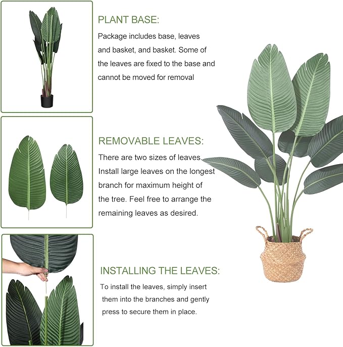 - CHIC SEAGRASS BASKET INCLUDED – Comes with an exquisitely made woven seagrass decorative basket, Ferrgoal fake bird of paradise plants creates a complete interior decoration look of tropical holiday style. These faux plants also make excellent gifts for housewarmings or birthdays and will definitely make the recipient happy.
