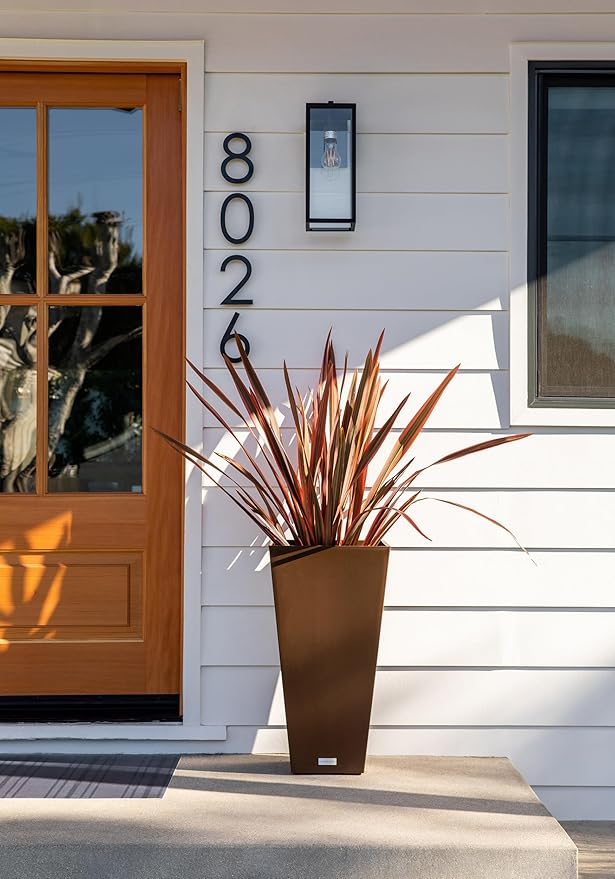 - GARDEN DECOR: Decorate your space with the Veradek Taper planter; Whether you use it as a patio, entrance or railing accent, this strong and sturdy yet lightweight contemporary garden container is the perfect fit with its sharp and modern appeal