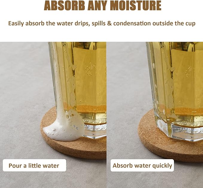- 【NATURAL CORK COASTER SET】No more worry about water rings and stains on your coffee table by using our coasters for drinks. These drink coasters are made of natural cork, perfect for home, living room, apartment, office, home essentials.