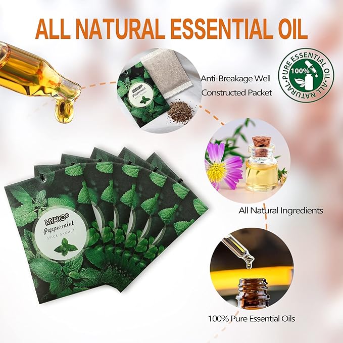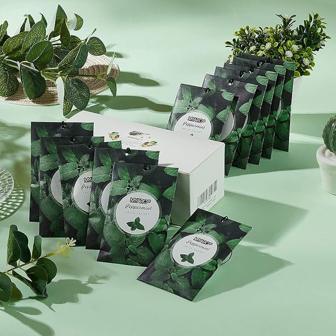 - MYARO Peppermint sachet bags: Includes 12 scented sachets (each bag size: 4.13 inch x 2.76 inch). Our natural fragrance will take you on a journey with the Peppermint fresh scents sachet packets