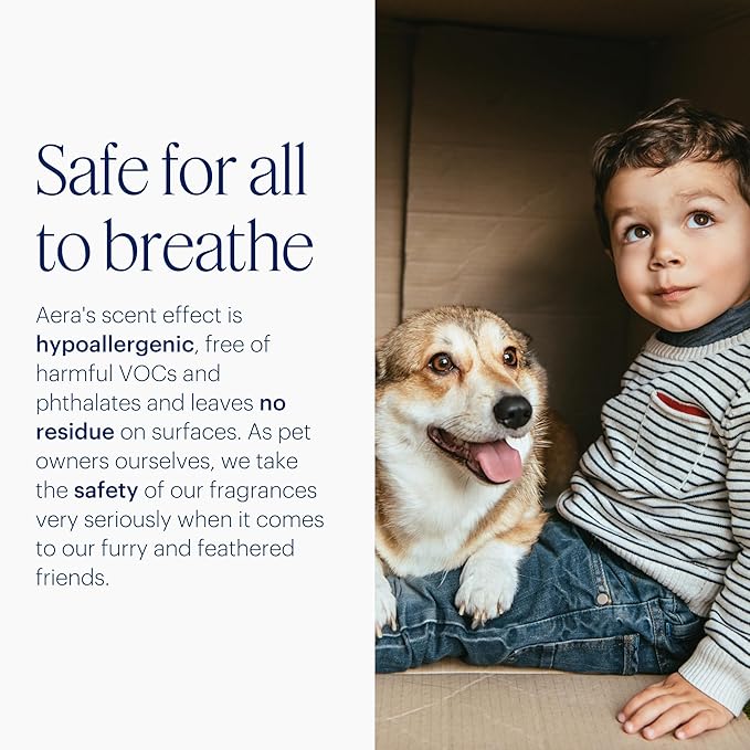 - Safe Scent: All scents are made from 100% ethically sourced fragrance and essential oils, making them safe for all, including kids & pets. Unlike aerosol sprays, Aera offers a hypoallergenic scent experience that is free of alcohol or other harmful VOCs
