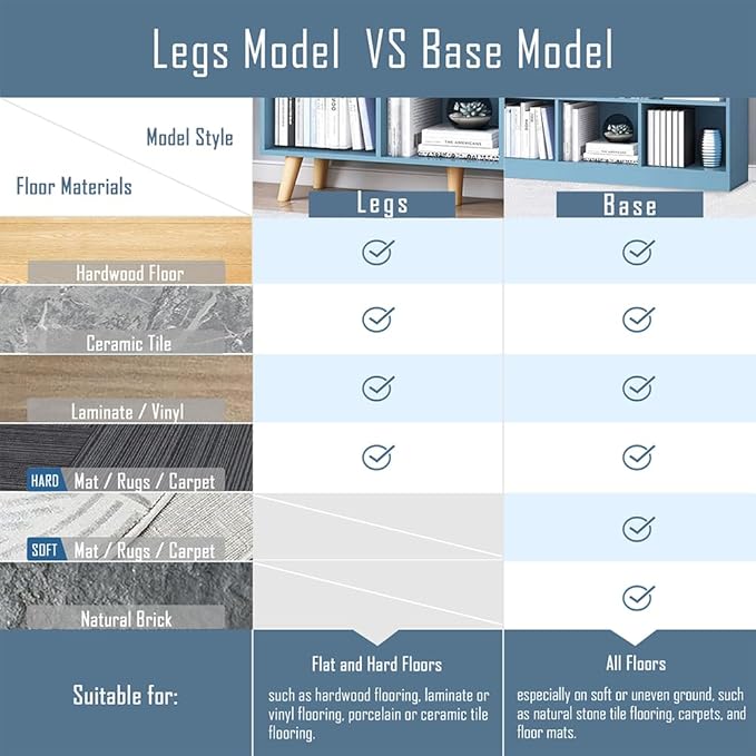 IOTXY Wooden Open Shelf Bookcase - 3-Tier Floorstanding Display Cabinet Rack with Legs, 8 Cubes Free Standing Bookshelf, Bright Blue
