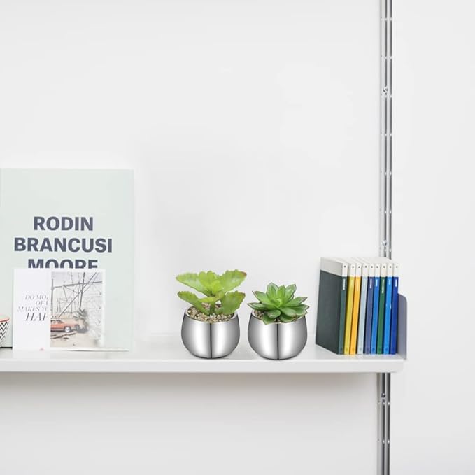 Briful Small Artificial Succulents in Pots Set of 2 Realistic Faux Succulents Plants with Silver Ceramic Pots Cute Mini Fake Plants Decor for Modern Home Table Office Desk Bathroom Shelf Decoration