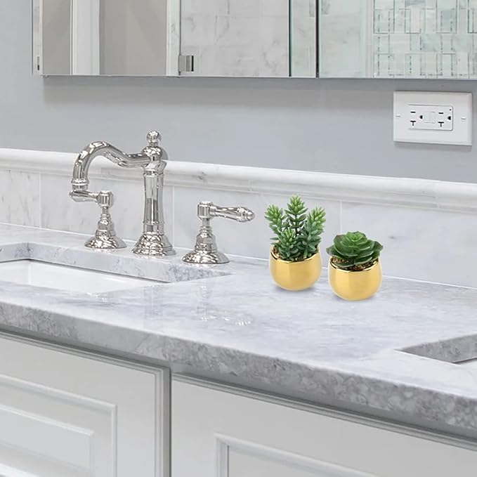 - Lifelike mini succulent plants with Gold ceramic pots, simple and elegant, faux succulents in pots don't need to maintain or care, mini succulents artificial suitable for those who like small succulents but don't have time to take care of them.