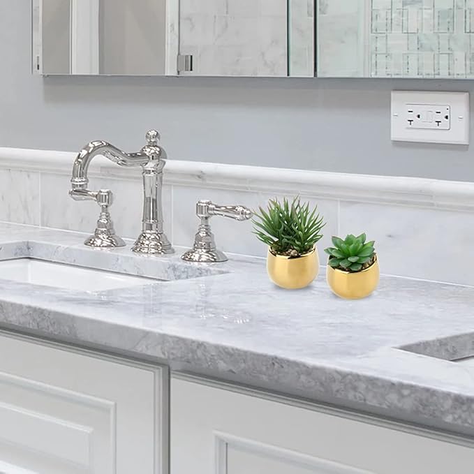 - Lifelike mini succulent plants with Gold ceramic pots, simple and elegant, faux succulents in pots don't need to maintain or care, mini succulents artificial suitable for those who like small succulents but don't have time to take care of them.