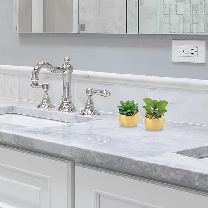 Briful Small Artificial Succulents in Pots Set of 2 Realistic Faux Succulents Plants with Gold Ceramic Pots Cute Mini Fake Plants Decor for Modern Home Table Office Desk Bathroom Shelf Decoration