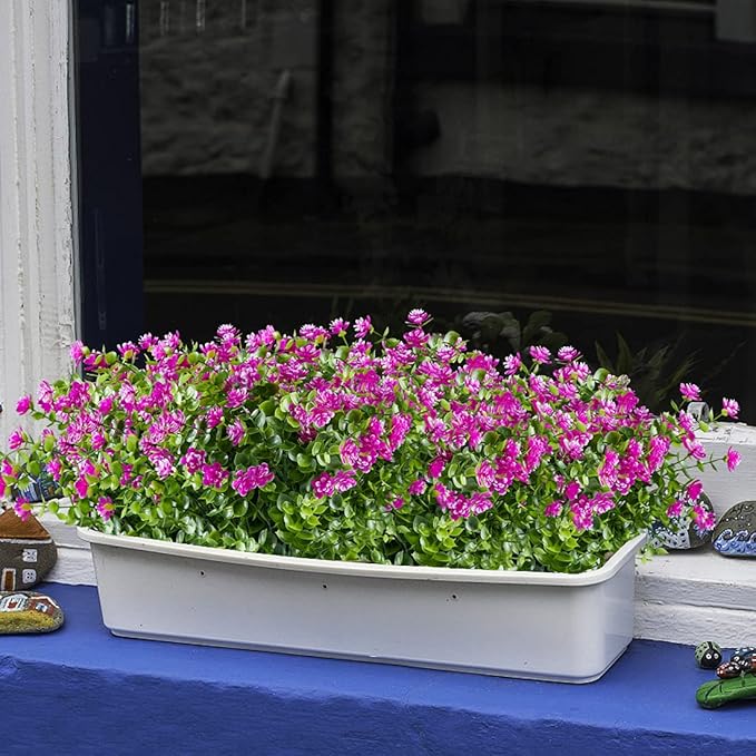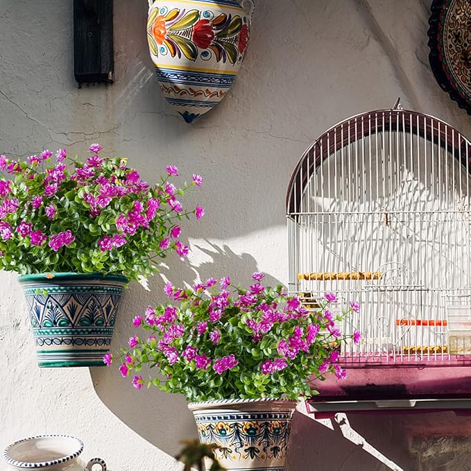 6PCS Artificial Eucalyptus Flowers, Fake Artificial Greenery UV Resistant No Fade Faux Plastic Plants for Wedding Bridle Bouquet Indoor Outdoor Home Garden Kitchen Office Table Vase(Fuchsia)